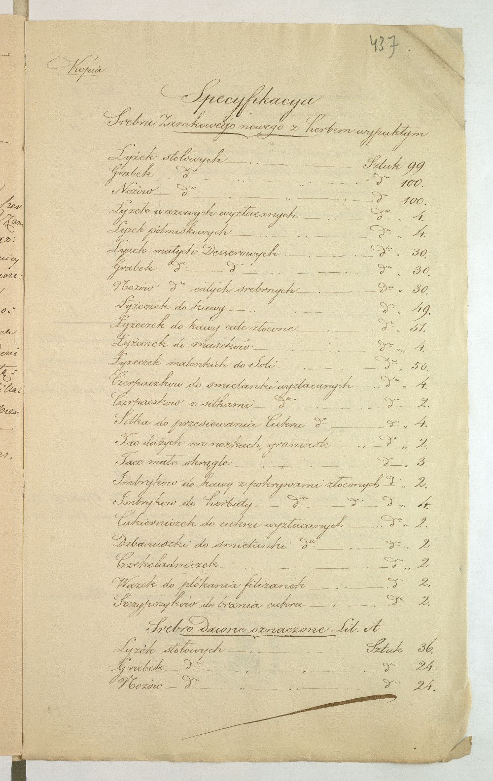 Dzieje administracji Zamku Królewskiego po trzecim rozbiorze Polski można podzielić na trzy okresy. Pierwszy obejmuje lata 1796-1832, drugi zamyka się w ramach: 1832-1863, trzeci to lata 1863-1918. Przemiany polityczne po upadku Rzeczypospolitej sprawiły, że Zamek Królewski w latach 1796-1832 zmieniał właściciela trzykrotnie. Pierwotnie zamek przypadł królowi pruskiemu Fryderykowi Wilhelmowi III, który rozlokował w nim część urzędów pruskich, a część pomieszczeń przeznaczył pod wynajem prywatnym lokatorom. Nadzór zwierzchni na Zamkiem Królewskim powierzono „J.K.M. Prus Południowych Wojenno-Ekonomicznej Kamerze”, a administrację bezpośrednią oddano w ręce Jana Kantego Fontany, który piastował urząd burgrabiego zamku jeszcze za czasów Stanisława Augusta Poniatowskiego. Dziesięcioletni okres zarządzania zamkiem przez administrację pruską zaznaczył się jako okres dewastacji pomieszczeń zamkowych oraz grabieżą zgromadzonych tam dzieł sztuki. Początkowo w Księstwie Warszawskim zarząd nad Zamkiem Królewskim należał do ministra spraw wewnętrznych. Na stałe sprawę administracji zamkiem uregulował dekret królewski z 23 VI 1809 r., powołujący Izbę Administracyjną Dóbr Koronie i Skarbowi Przywróconych. Urząd ten miał charakter nadworny, a jego marszałek Adam Bronic miał nadzorować całość spraw administracyjnych związanych z Zamkiem jako rezydencją królewską. Po likwidacji Izby Administracyjnej Dóbr Koronie i Skarbowi Przywróconych w pierwszych latach Królestwa Polskiego, na mocy dekretu z 18 V 1818 r. powołano nowy urząd, Komisję Nadzoru Budowl Korony. Jej prezesem został Bronic, zastępcami – generalny inspektor gmachów królewskich Jakub Kubicki oraz intendent Łazienek Ignacy Banczakiewicz. Komisja była odpowiedzialna za stan architektoniczny budowli i majątek ruchomy. Zajmowała się także wszelkiego rodzaju sprawami gospodarczymi (remonty, dzierżawa) oraz kontrolowała wpływy pieniężne do kasy i wydatki bieżące i nadzwyczajne. Po wybuchu powstania listopadowego uchwałą Rady Najwyższej Narodowej wszelkie budowle należące do Korony, a więc i Zamek Królewski, oddano pod zarząd zwierzchni Komisji Rządowej Spraw Wewnętrznych, przy czym organem wykonawczym pozostała nadal Komisja Nadzoru Budowl Korony. Na jej czele stanął Adolf Cichowski, który wykrył wiele nadużyć, jakich dopuszczali się członkowie Komisji Nadzoru, m.in. były prezes Bronic. Główne oskarżenia dotyczyły przede wszystkim kradzieży i samowolnej sprzedaży cennych obrazów i innych ruchomych rzeczy zamkowych. Komisja Rządowa szczególny nacisk położyła na zabezpieczania majątku ruchomego, nakładając na Komisje Nadzoru obowiązek przeprowadzania co kwartał drobiazgowego przeglądu mebli i wszystkich kosztowności znajdujących się w Zamku. Pismo Rządu Narodowego z 7 VI 1831 r., skierowane do Komisji Rządowej Spraw Wewnętrznych i Policji nakazywało przekazanie całego srebra zamkowego, znajdującego się już w depozycie Banku Polskiego, „gładkiej roboty” i „wyzłacanego” do Mennicy Warszawskiej, w celu przetopienia go na monety. Srebro zamkowe, przeznaczone do przebicia w mennicy, zostało oszacowane w Komisji Rządowej na 15 780 złp. Odpowiedź Komisji Nadzoru Budowl Korony z 27 czerwca zawierała wyszczególnienie sreber zamkowych przekazanych do przetopienia. Przekazano i przetopiono wówczas 278 grzywien (jednostka wagowo-pieniężna, 1 grzywna – ok. 210 gram) srebra zamkowego „topionego i probowanego”, co dało ogólną kwotę 17 353 złp. Cena czystej grzywny, po odliczeniu 3 gr. od grzywny dla Mennicy za stopienie, wyniosła 86 złp. W zachowanym spisie zamkowego srebra „nowego”, przetopionego na monety, widnieje m.in.: 99 sztuk łyżek stołowych, 100 sztuk „grabek” (widelce) i 100 noży, po 30 sztuk łyżeczek, widelczyków i nożyków deserowych, 4 „sitka do przesiewania cukru”, 2 „tace duże na nóżkach graniaste”, 2 „czerpaki do śmietanki wyzłacane”, 2 duże tace, 2 imbryki do kawy i 4 imbryki do herbaty, po 2 cukierniczki i po 2 dzbanuszki do kawy oraz 2 „wazy do płukania filiżanek”. Ponadto przekazano srebra „dawnego” 36 sztuk łyżek stołowych, 24 widelce i noże, łyżkę wazową wyzłacaną, 2 łyżki „półmiskowe”, 11 łyżeczek do kawy, „tacę owalną z galeryjką”, koszyczek do cukru, kubeczek do spirytusu, dzbanuszek do śmietanki wyzłacany, „szczypczyki do cukru”, „postumencik do fajerki” i „imbryczek do herbaty wyzłacany”. |