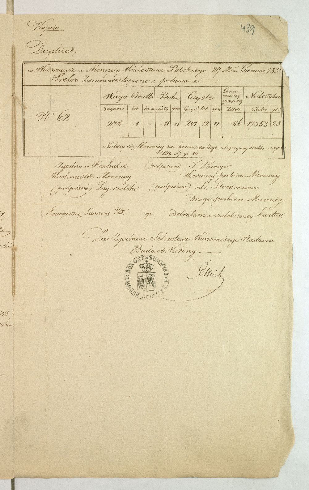Miejsce przechowywania | AGAD, Komisja Rządowa Spraw Wewnętrznych, sygn. 6447, s. 380, 437-439. |