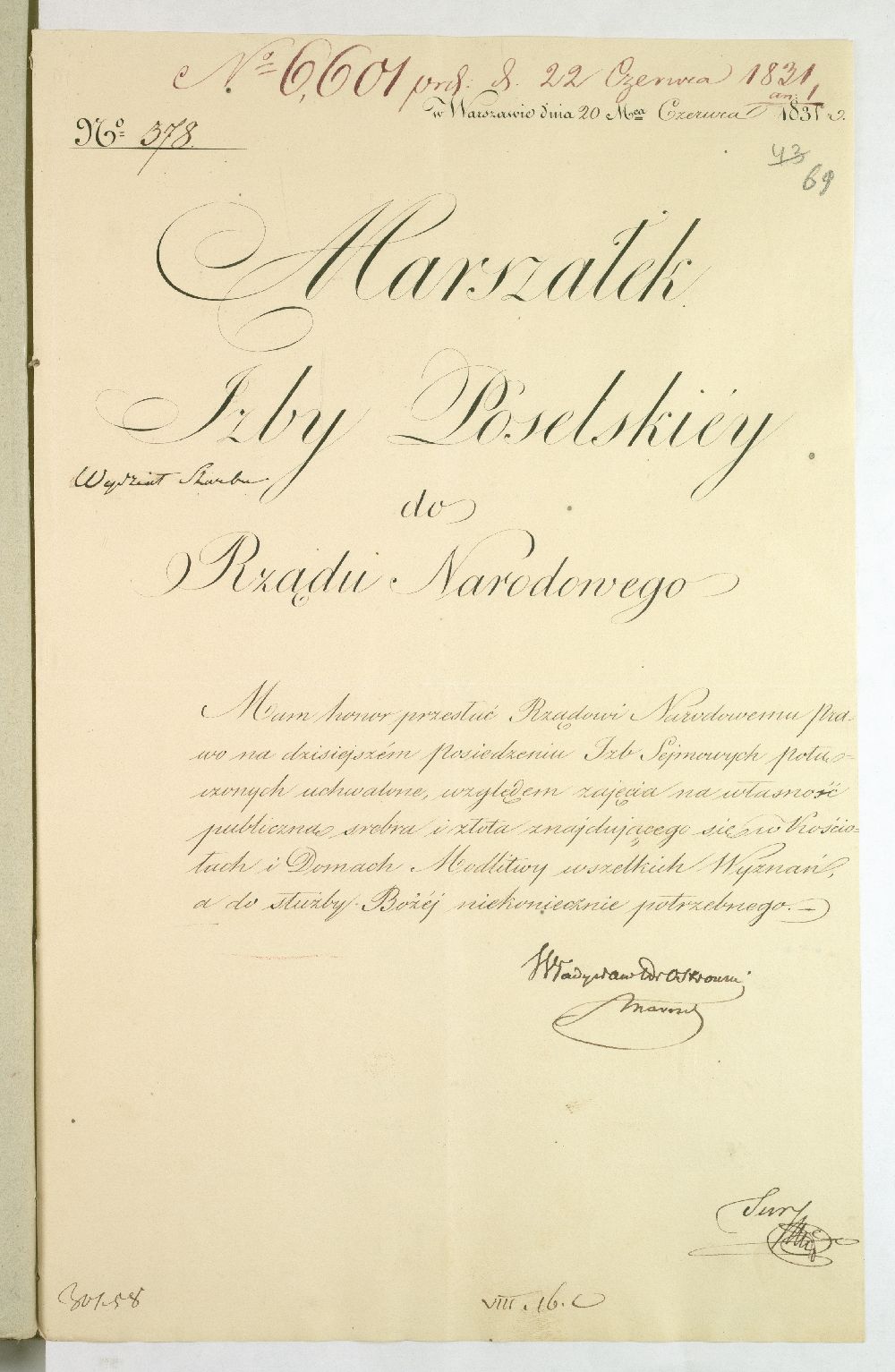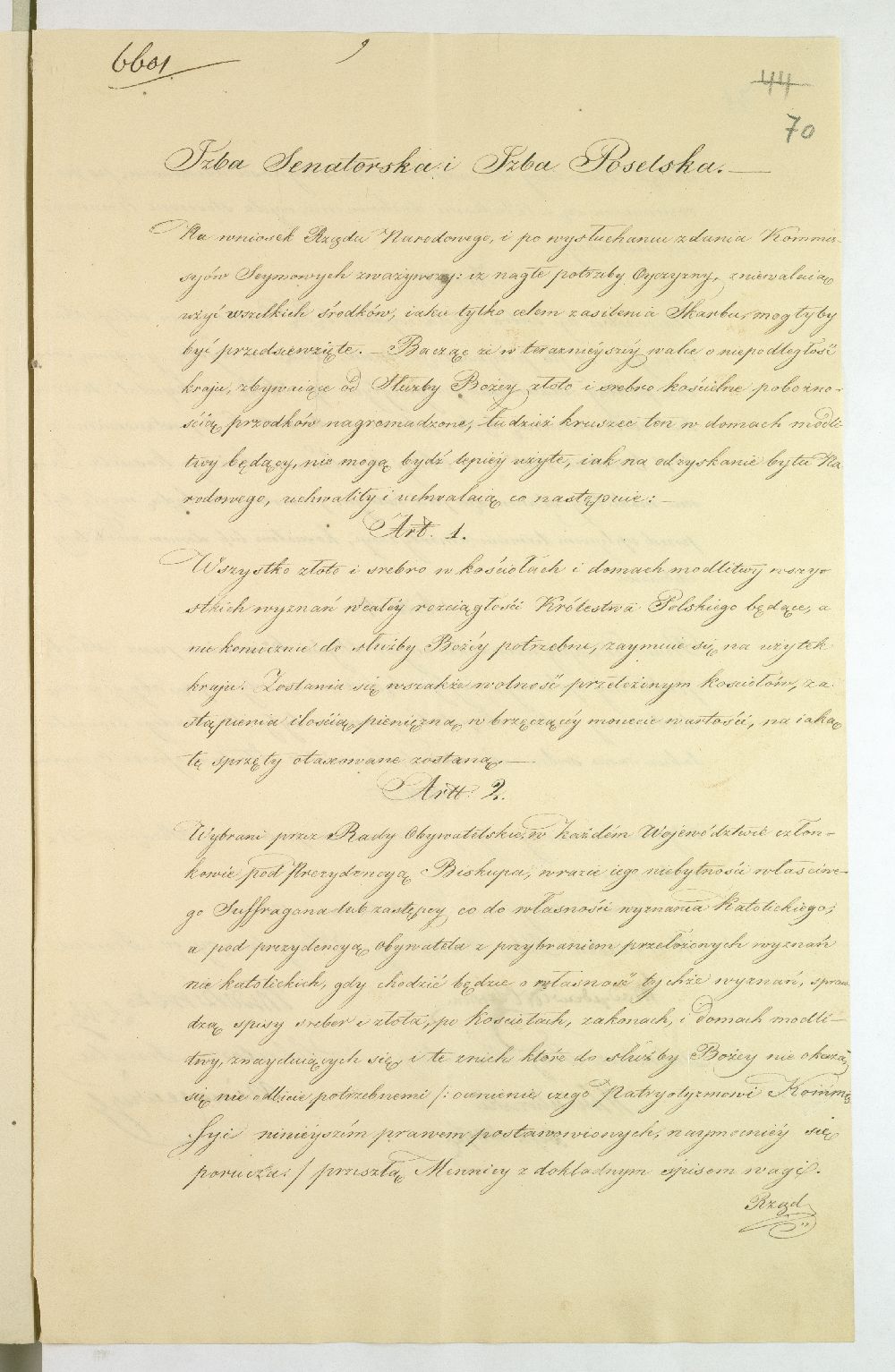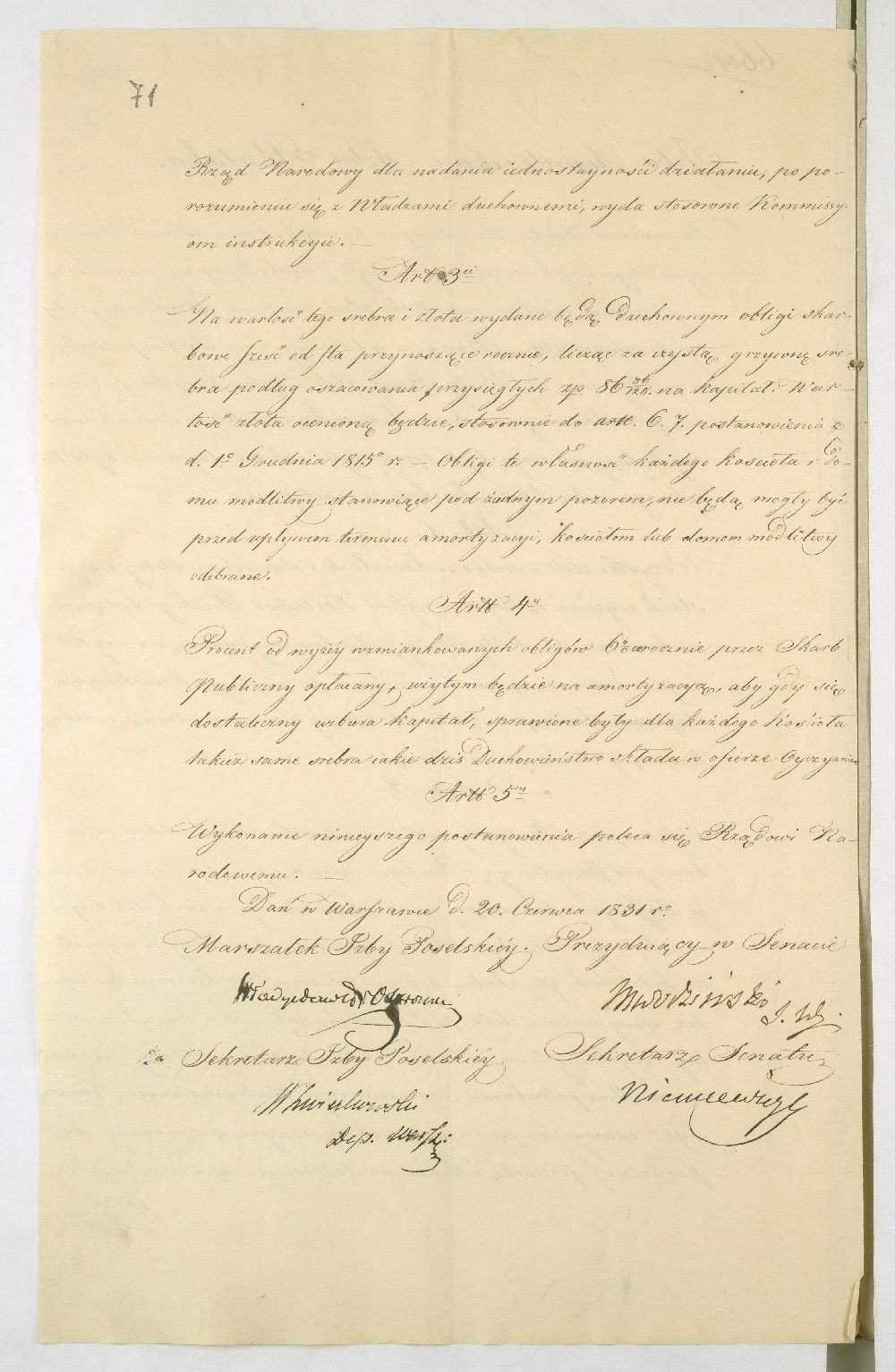 Miejsce przechowywania | AGAD, Władze Centralne Powstania Listopadowego 1830-1831, sygn. 351, s. 69-71. |