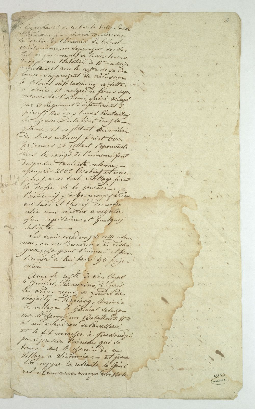 Opis zewnętrzny | Rkps, oryg., jęz. francuski, zszyte karty papierowe tworzące jednostkę: „Opis operacji wojennych wojsk polskich od 11 VII [1831] do 24 VII [1831]”. |
