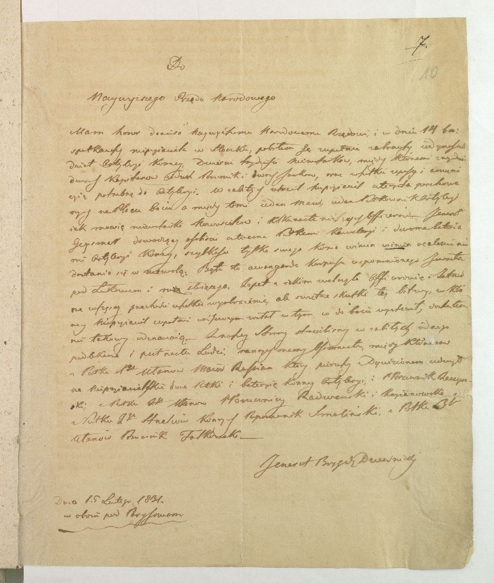 Miejsce przechowywania | AGAD, Władze Centralne Powstania Listopadowego 1830-1831, sygn. 262, s. 10. |