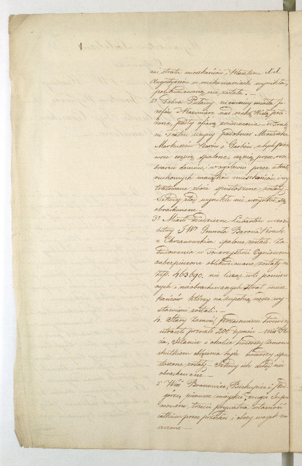 Raport z objazdu województwa lubelskiego, dokonanego przez Wincentego Krasińskiego, przedstawiający stan zniszczeń w wymienionym województwie po powstaniu listopadowym.