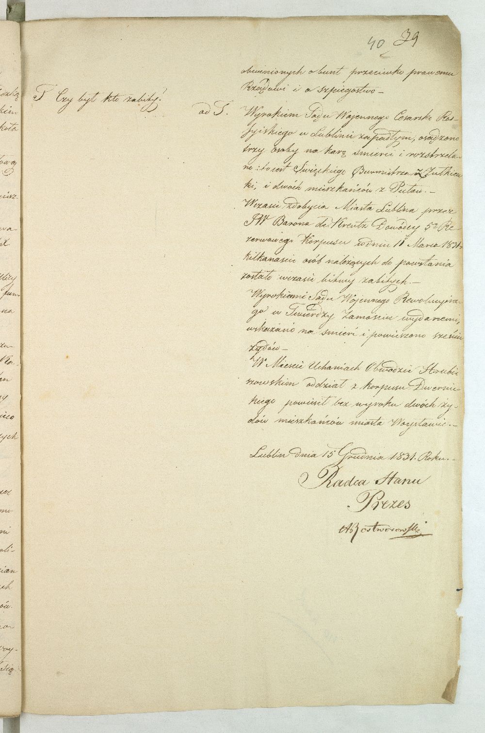 Data i miejsce wydania | 15 XII 1831, Lublin |