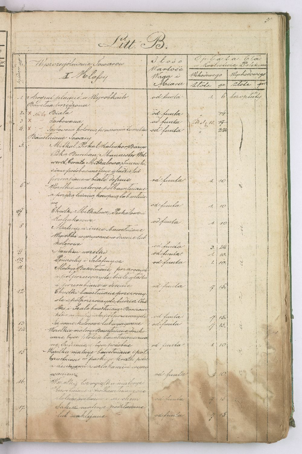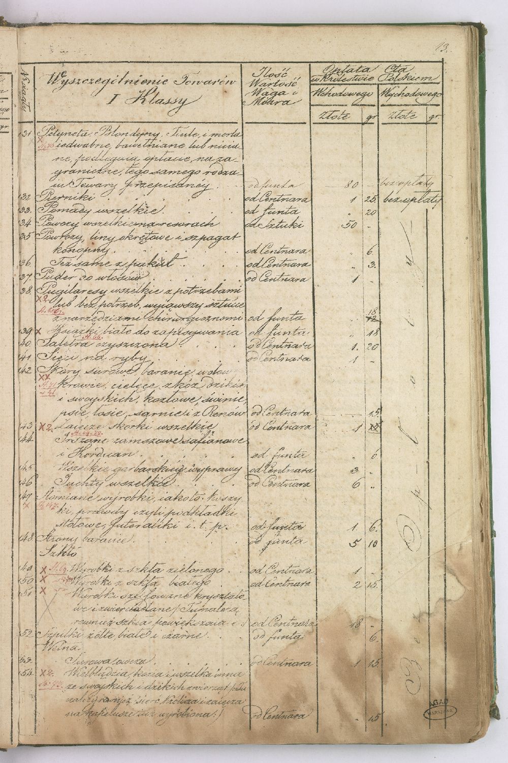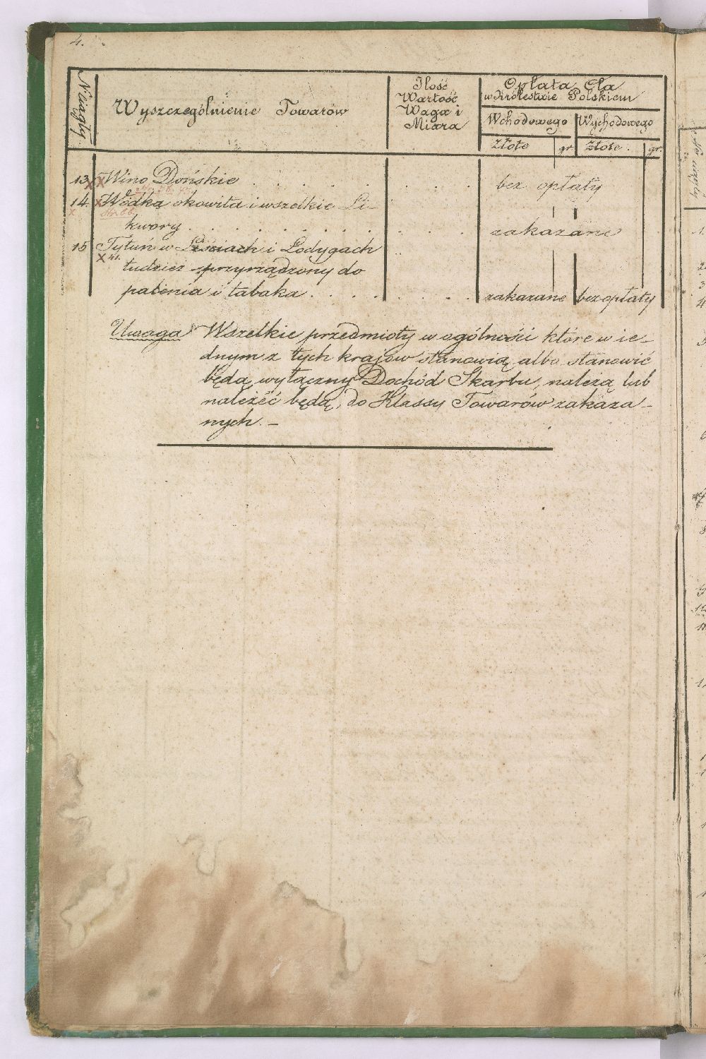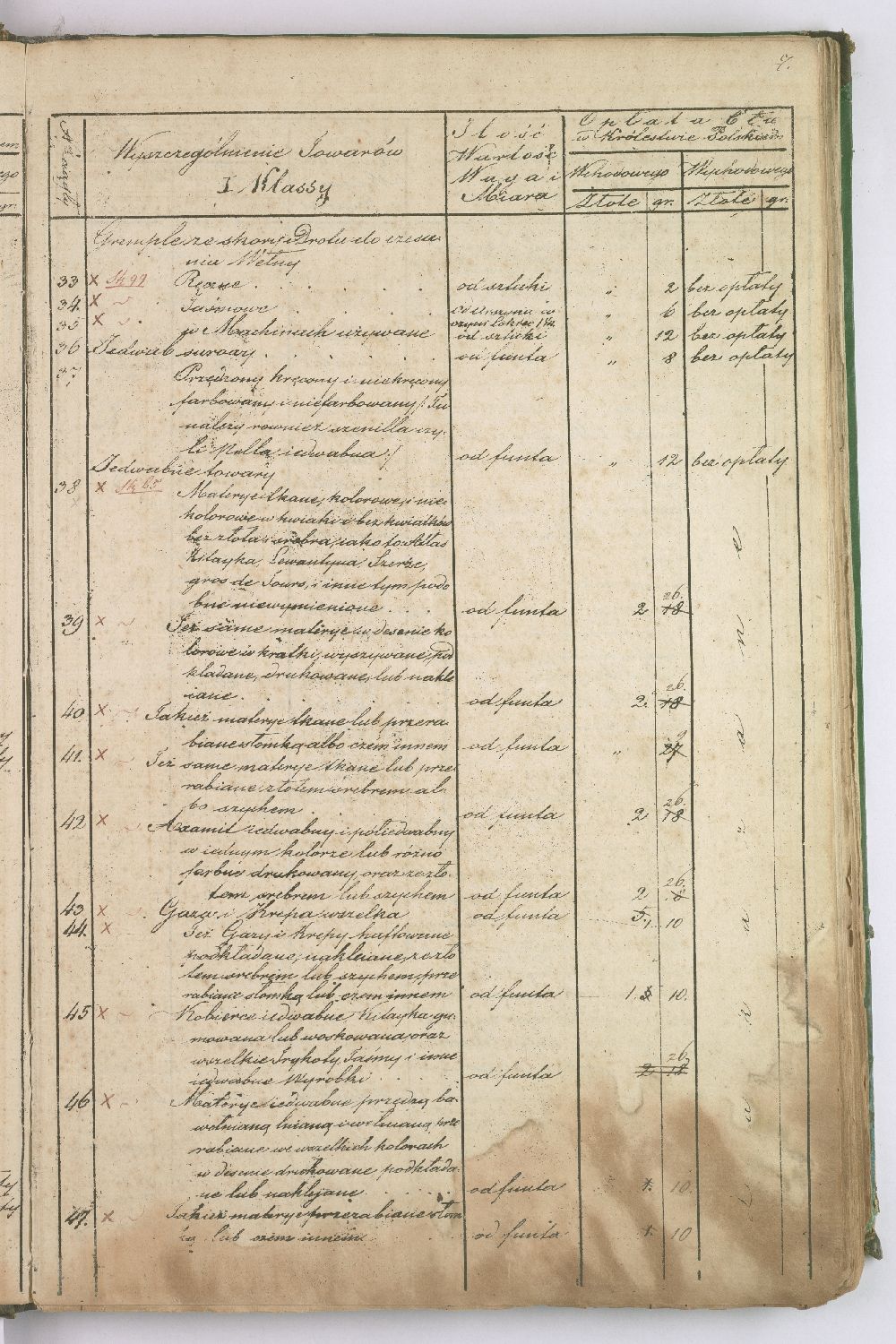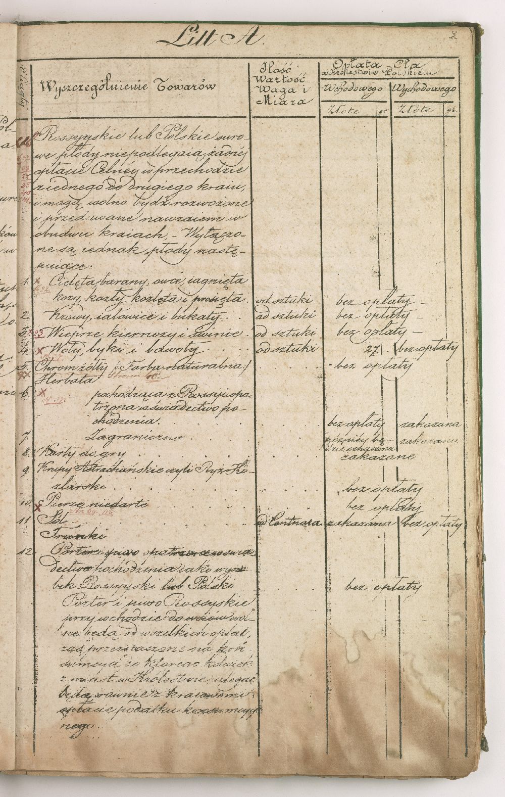 Taryfa nowo ustanowionych opłat celnych pomiędzy Królestwem Polskim a Cesarstwem Rosyjskim.