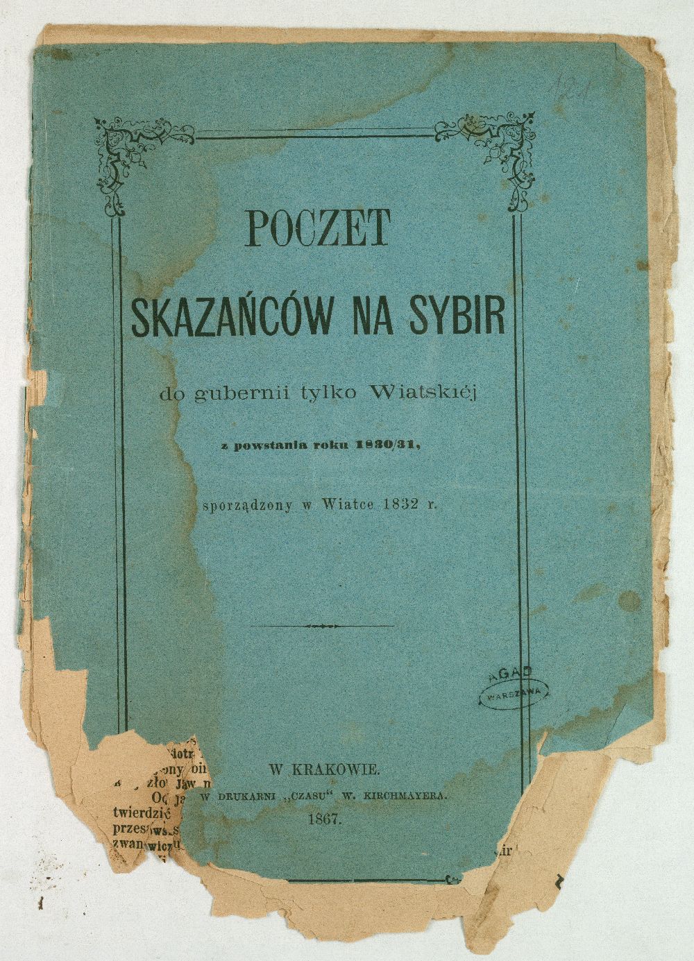 „Poczet skazańców na Sybir do guberni tylko Wiatskiej z powstania roku 1830/31 sporządzony w Wiatce 1832 r.”.