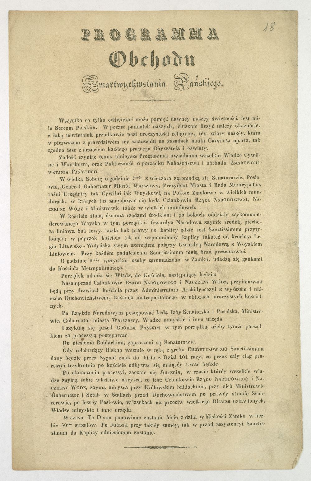 „Program Obchodu Zmartwychwstania Pańskiego” w 1831 r.